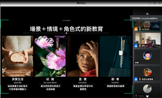 辛教授介绍,从2012年开始,慕课开始出现,在2020年新冠肺炎期间,借着前期的积累,线上教学的模式已经搭成。经调查,在疫情前后,老师们对于采用/回归实体课程的意愿已经从原来的61%降低到30%,有53%的老师愿意启动线上+线下的混合教学模式,还有16%的老师愿意做线上课程,彻底转型。这对于我们推动线上教学的发展是意外收获。这种新式行动学习具有很好的即时性、个人化、有效性和普及性。在这样的背景下形成的 “场景+情景+角色式的新教育”模式,对于推动未来教改的意义是值得探讨的。在当前新的教育模式中,老师应从解惑者变成知识教练,其角色从单方面的传道、授业、解惑者,转型成主持社会群研讨会的主持人和从旁协助、带领学生集体建构知识的教练,带领学生自主学习。