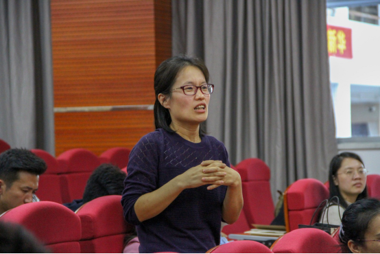 辛致炜教授从他教授的《简报制作与表达技巧》、《踏溯台南》等课程出发,并将一个个案例配以动画、音乐、视频,娓娓道来,不仅是给在座的教师分享了“激越四段式教学法”在课程中具体运用,同时也是一场视听盛宴。辛教授鼓舞教师,教师专业成长之路在于“坚持读书、坚持观察、坚持实践、坚持思考”;要用任何的形式将所见所闻或者亲历的事情记载下来,不拘泥于体裁、形式、方法,只要读书、只要思考、只要动手,教师的叙事就是教育最美的华章。最后,辛致炜教授以“我们不是因为事情困难而感到害怕,而是因为我们害怕所以事情变得困难”与在座教师共勉,鼓励教师应该主动地投入到课堂教学改革中,提升自身的课堂教学能力,提高课堂教学质量。