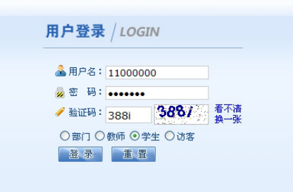 第一步:打开IE浏览器,输入网址jw.xhsysu.edu.cn(外网)或192.168.255.71(内网),进入用户登录界面。输入学号及密码,选择“学生”角色,按“登录”,界面如下: