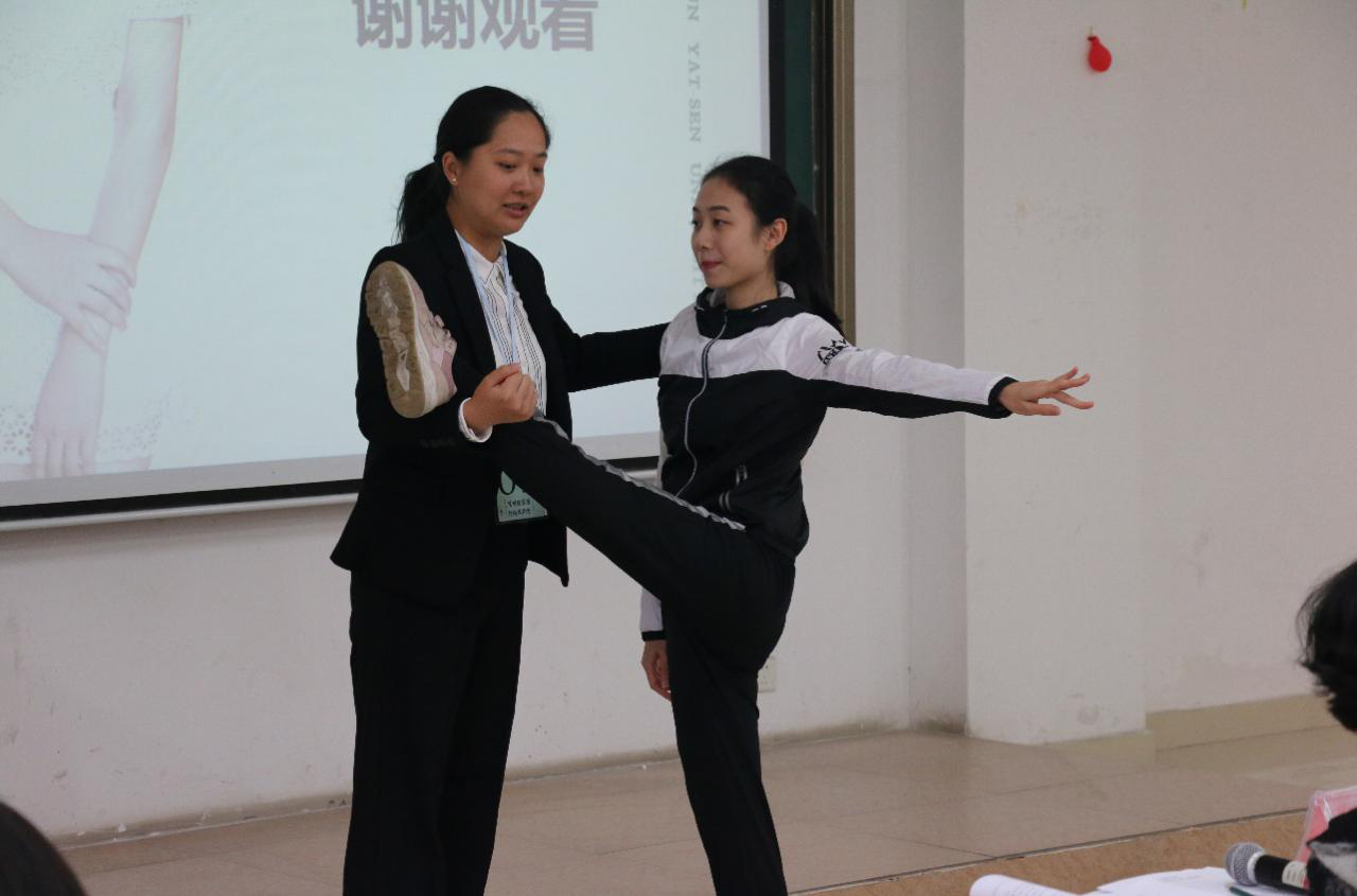 体育部的胡美老师除了进行授课技巧的说明外,还和学生一起进行了校园啦啦操教学要点的现场演示,使评委和观众更直观地理解她的授课过程和方法。其他参赛老师也使出浑身解数,采用不同的方式展示课程设计,比赛的气氛异常热烈。