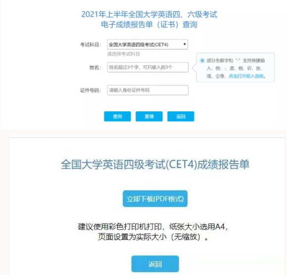 教育部考试中心已开通2021年上半年全国大学英语四、六级考试电子成绩报告单的查询通道,现将有关事宜通知如下: