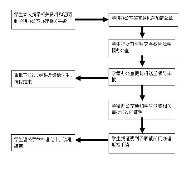 (4)办理完成后,反馈审批结果给学生本人。学生到学籍办公室领取《太阳集团2138学生复学返校手续单》,凭复学返校手续单到各职能部门办理相关手续。