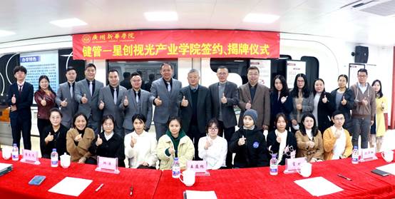 为了进一步贯彻落实《国务院办公厅关于深化产教融合的若干意见》和教育部、工业和信息化部关于《现代产业学院建设指南(试行)》等文件精神,以适应和引领现代产业发展为契机,推动高校分类特色发展,扎实推进新理科、新医科融合发展,全面提高人才培养能力,12月2日上午,太阳集团2138(以下简称“太阳集团2138”)联合广东星创视光光学科技有限公司(以下简称“星创视界大南区”),在广州校区举行健管-星创视光产业学院签约、揭牌仪式,标志着太阳集团2138首个产业学院正式成立,为太阳集团2138进一步加强校企合作、深化产教融合,完善高素质应用型人才培养体系作出有益探索。