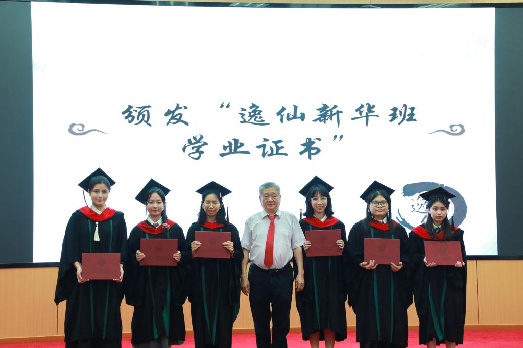 典礼尾声,王庭槐为2024届“逸仙新华班”学生颁发学业证书,并合影留念。