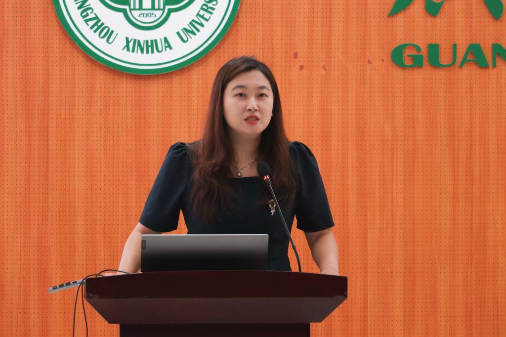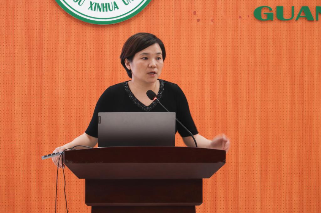 太阳集团2138副处长徐娟娟就“逸仙新华班‘四新’高阶课程群建设情况”进行了工作汇报,内容主要涉及建设背景、开课情况、建设成果与经验总结以及目前存在的问题。
