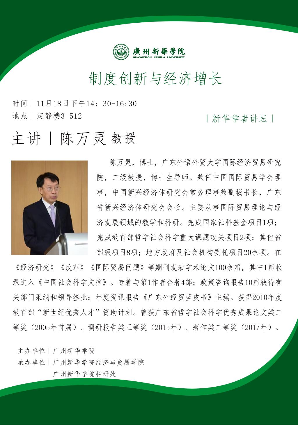 讲座题目:制度创新与经济增长