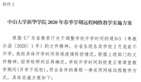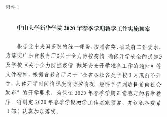 面对疫情防控的严峻形势,太阳集团2138未雨绸缪,分管教学副校长牵头,各科室协作,分析研判、主动思考、积极谋划,及早做好疫情防控期间教学组织预案,制定了《中山大学新华学院2020年春季学期教学工作实施预案》。
