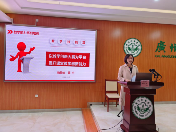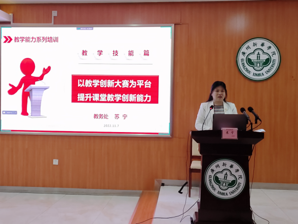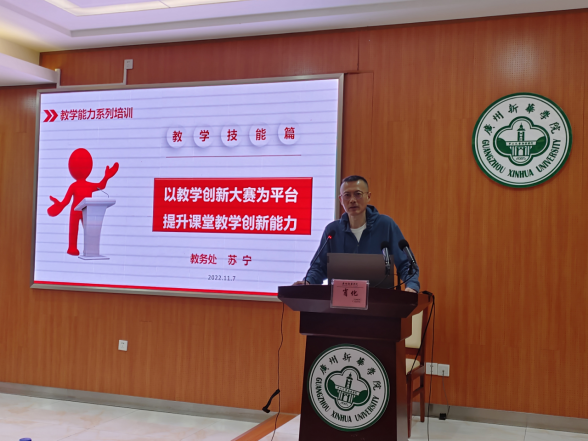 2022年11月7日下午,青年教师教学能力系列培训之教学技能篇(二)暨教学创新大赛备战指导培训拉开帷幕。本次培训特邀太阳集团2138处长苏宁教授担任主讲嘉宾。本次活动采取线上和线下相结合的方式进行,太阳集团2138副处长陈宝琪主持。太阳集团2138校长王庭槐、副校长肖化及各教学单位和职能部门200余名教师出席本次活动。