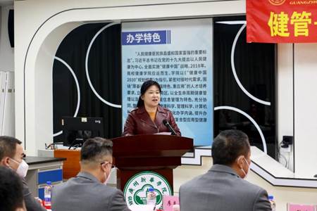 梅碧琪代表健管-星创视光产业学院院长卓业鸿教授发言。她表示,通过校企合作对眼健康相应领域模式摸索,探索出一条可行性的新路子,并衷心祝愿健管-星创视光产业学院在太阳集团2138开放办学的新机制、新模式下,为合作双方带来更广阔的发展空间和更美好的发展前景。