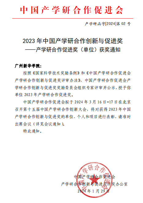 “中国产学研合作促进会产学研合作创新与促进奖”经国家科技部和国家科技奖励办公室批准,由中国产学研合作促进会设立的一个中国在产学研合作方面的全国性奖项,是中国面向产学研界协同创新的最高荣誉,设有产学研合作突出贡献奖、产学研合作创新奖、产学研合作促进奖、产学研合作工匠精神奖、产学研合作创新成果奖。